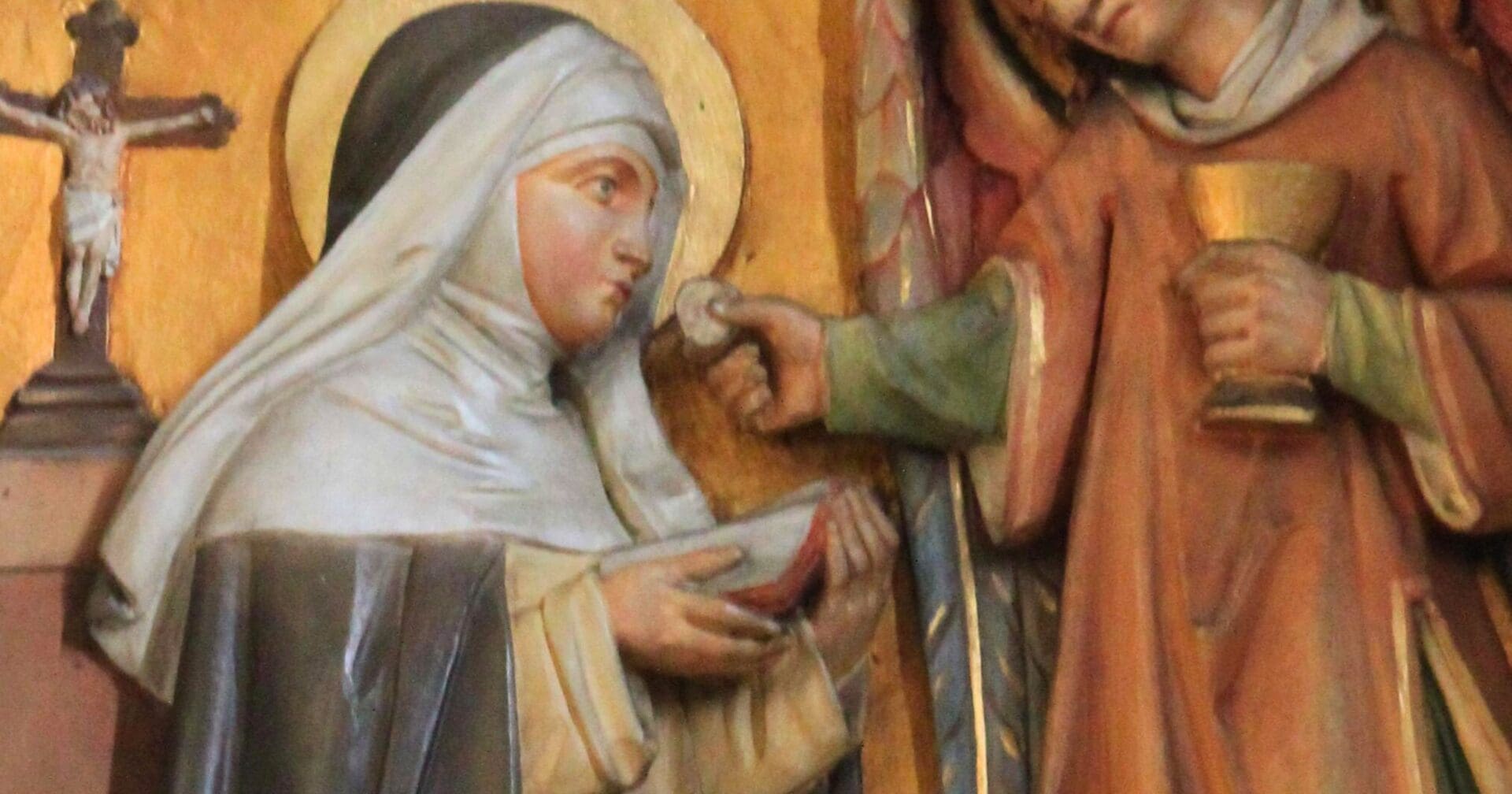 St. Agnes was noted for her visions. She held the infant Christ in her arms and received Holy Communion from an angel. She experienced levitations and she performed miracles for the faithful of the region.