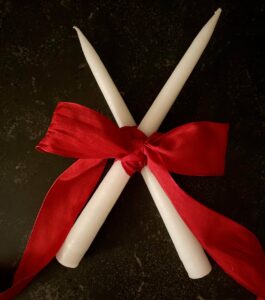 In many places on the day of his feast, the blessing of St. Blaise is given: two candles are consecrated, generally by a prayer, these are then held in a crossed position by a priest over the heads of the faithful or the people are touched on the throat with them. At the same time, the following blessing is given: