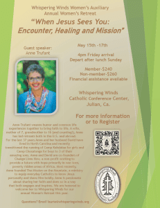 You are warmly invited to join the Whispering Winds Women’s Auxiliary for our Spring Retreat, When Jesus Sees You: Encounter, Healing and Mission.
